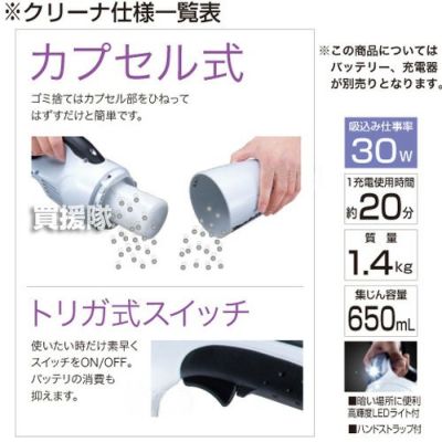 ※こちらはバッテリー・充電器が別売りの「掃除機本体のみ」となります。