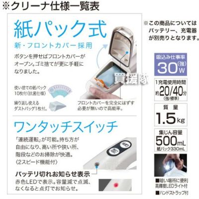 ※こちらはバッテリー・充電器が別売りの「掃除機本体のみ」となります。