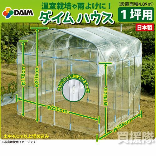 他の画像を見る 【送料無料】 1年中使える菜園ハウス。春夏は「雨よけハウス」に。秋冬は「温室栽培」に 第一ビニール ダイムハウス [1坪用] 買援隊 特別価格 ¥ 21,780 税込 カートに入れる お気に入りに登録する
