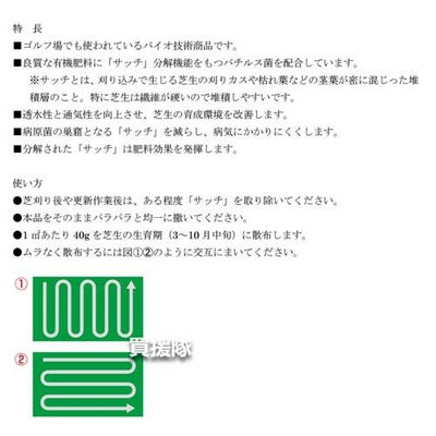 パラパラ撒くだけで病原菌の巣窟となる「サッチ」を分解し、病気にかかりにくくします。