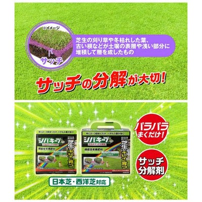 パラパラ撒くだけで病原菌の巣窟となる「サッチ」を分解し、病気にかかりにくくします。