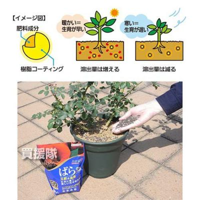 温度変化にあわせて肥料の溶出量が調節される「リリースコントロールテクノロジー」を採用。暖かく生育が盛んな時期は肥料成分が速やかに溶出され、逆に冷涼で生育が鈍くなる時期は肥料の溶出は緩やかになります。