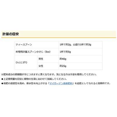 ※本品は食品ではありません。食べられません。原料に天然の鉱物を使用しているため、配合された一部の粒で、製品ごとに色が異なる場合がありますが、肥料効果には影響ありません。開封後は密封し、飲食物・食器類やペットの餌と区別し、直射日光をさけ、小児の手の届かない冷涼で乾燥した場所に保管してください。