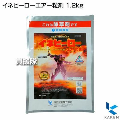 湛水散布、湛水周縁散布、無人航空機による幅広い散布方法が可能な製剤です。 拡散性が優れた少量拡散性粒剤(400g/10a)で、1袋1.2kg(30a用)です。 移植直後~ノビエ3葉期までの使用で、多年生カヤツリグサ科雑草およびSU抵抗性に高い効果があります。