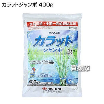 ・本剤は小包装(パック)のまま、10アール当たり10個の割合で水田に投げ入れる。