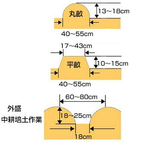作物がある程度育った際に、茎の下部に土を寄せて覆う作業となります。根の発達を促したり、倒伏を防止します。除草効果もあります。