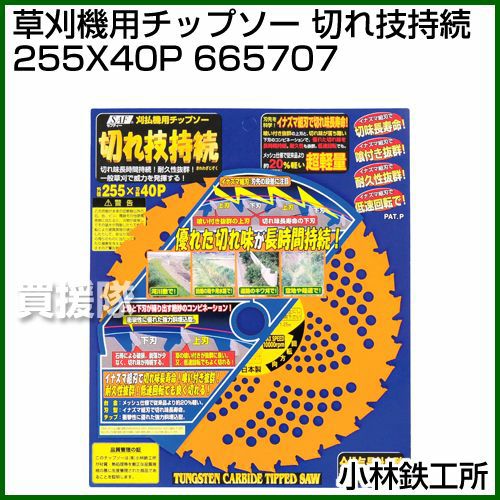 他の画像を見る 業界初!切れ味長寿命のイナズマ組刃 小林鉄工所 草刈機用チップソー 切れ技持続 255X40P 665707 買援隊 特別価格 ¥ 2,310 税込 カートに入れる お気に入りに登録する