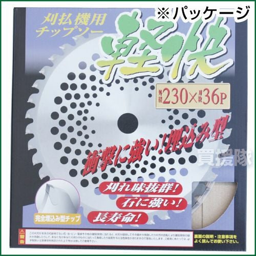 他の画像を見る 【送料無料】プロ用・縦型Rチップで切れ味を追及! 小林鉄工所 草刈機用チップソー 稲妻A型 230X36P 100772 買援隊 特別価格 ¥ 3,680 税込 カートに入れる お気に入りに登録する