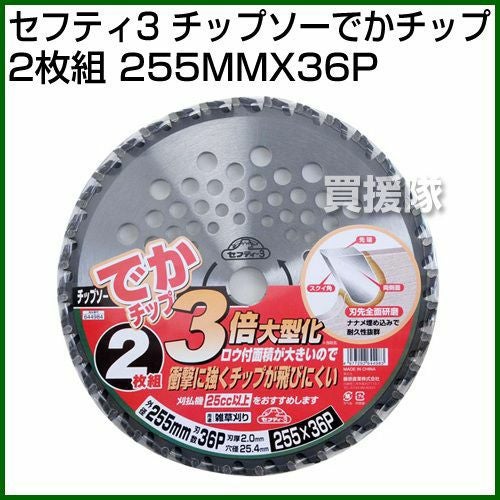 他の画像を見る 【ポイント10倍】園芸機器・刈払機の刈払機(チップソー)255MMX36P。ろう付け面積が大きいため衝撃に非常に強くチップが飛びにくいです。 セフティー3・チップソーデカチップ2枚組・255MMX36P 買援隊 特別価格 ¥ 3,111 税込 詳細を見る お気に入りに登録する