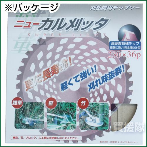 他の画像を見る 更に長寿命!軽くて強い!斬れ味抜群のチップソー 刈払機用替刃 草刈機用替え刃 IWOOD ニューカル刈ッタ 230mm 36P 買援隊 特別価格 ¥ 1,791 税込 カートに入れる お気に入りに登録する