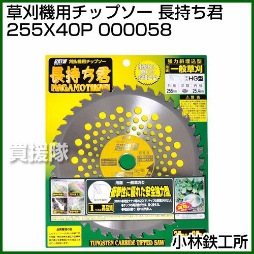 他の画像を見る 【送料無料】衝撃性に優れた安全強力型 小林鉄工所 草刈機用チップソー 長持ち君 255X40P 000058 買援隊 特別価格 ¥ 3,410 税込 カートに入れる お気に入りに登録する