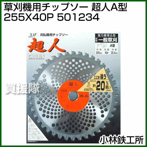 他の画像を見る 【送料無料】軽量メッシュ型・縦型Rチップで切れ味を追求! 小林鉄工所 草刈機用チップソー 超人A型 255X40P 501234 買援隊 特別価格 ¥ 3,550 税込 カートに入れる お気に入りに登録する
