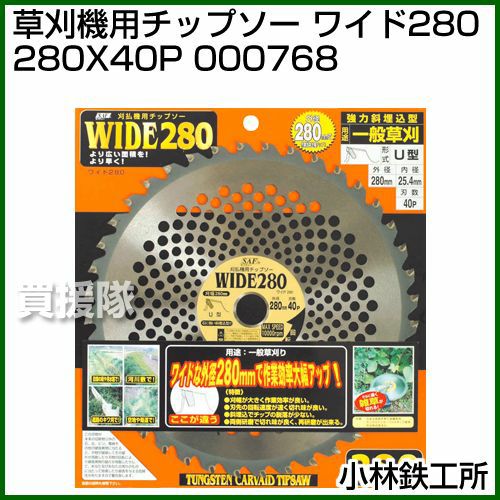 他の画像を見る 【送料無料】ワイドな新外径で作業効率アップ! 小林鉄工所 草刈機用チップソー ワイド280 280X40P 000768 買援隊 特別価格 ¥ 4,660 税込 カートに入れる お気に入りに登録する