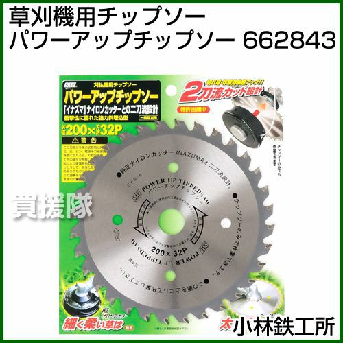 他の画像を見る 【送料無料】稲妻二刀流純正チップソー!衝撃性に優れた強力斜埋込型! 小林鉄工所 草刈機用チップソー パワーアップチップソー 662843 買援隊 特別価格 ¥ 4,030 税込 カートに入れる お気に入りに登録する