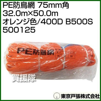 東京戸張 PE防鳥網 75mm角 32.0m×50.0m [オレンジ色/400D] B500S 500125 [カラー:オレンジ]