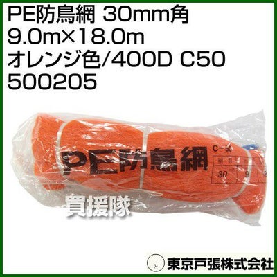 東京戸張 PE防鳥網 30mm角 9.0m×18.0m [オレンジ色/400D] C50 500205 [カラー:オレンジ]