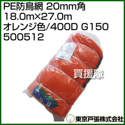 東京戸張 PE防鳥網 20mm角 18.0m×27.0m [オレンジ色/400D] G150 500512 [カラー:オレンジ]