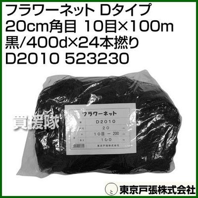 東京戸張 フラワーネット Dタイプ 20cm角目 10目×100m [黒/400d×24本撚り] D2010 523230 [カラー:黒]