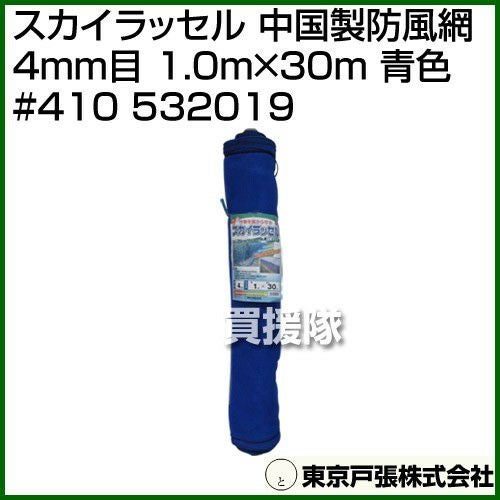 他の画像を見る 用途がいっぱいのスカイラッセル! 《法人限定》東京戸張 スカイラッセル(中国製防風網) 4mm目 1.0m×30m [青色] #410 532019 [カラー:青色] 買援隊 特別価格 ¥ 4,300 税込 詳細を見る お気に入りに登録する
