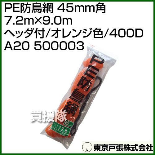 他の画像を見る ストップtheバード!防鳥は何といっても網が一番 東京戸張 PE防鳥網 45mm角 7.2m×9.0m [オレンジ色/400D] A20 500003 [カラー:オレンジ] 買援隊 特別価格 ¥ 1,290 税込 カートに入れる お気に入りに登録する