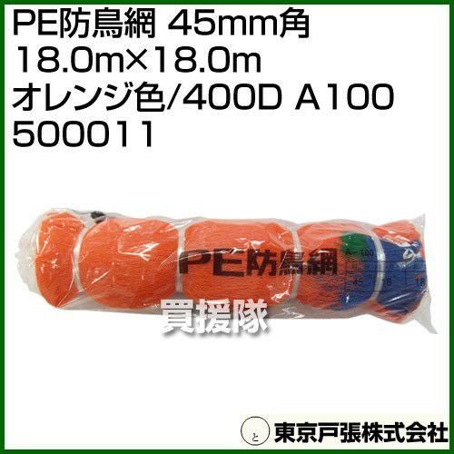 他の画像を見る ストップtheバード!防鳥は何といっても網が一番 東京戸張 PE防鳥網 45mm角 18.0m×18.0m [オレンジ色/400D] A100 500011 [カラー:オレンジ] 買援隊 特別価格 ¥ 4,190 税込 カートに入れる お気に入りに登録する