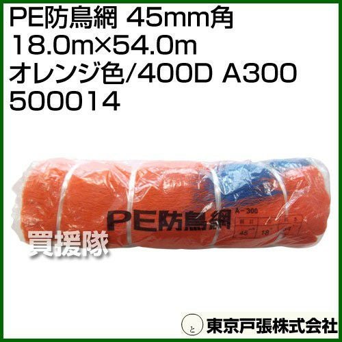 他の画像を見る ストップtheバード!防鳥は何といっても網が一番 東京戸張 PE防鳥網 45mm角 5.4m×18.0m [オレンジ色/400D] A30S 500023 [カラー:オレンジ] 買援隊 特別価格 ¥ 1,510 税込 カートに入れる お気に入りに登録する