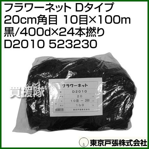 他の画像を見る 【送料無料】花・アスパラ・ネギ等の倒伏防止に 東京戸張 フラワーネット Dタイプ 20cm角目 10目×100m [黒/400d×24本撚り] D2010 523230 [カラー:黒] 買援隊 特別価格 ¥ 11,990 税込 カートに入れる お気に入りに登録する