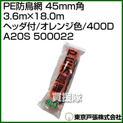 他の画像を見る ストップtheバード!防鳥は何といっても網が一番 東京戸張 PE防鳥網 45mm角 3.6m×18.0m [オレンジ色/400D] A20S 500022 [カラー:オレンジ] 買援隊 特別価格 ¥ 1,290 税込 カートに入れる お気に入りに登録する