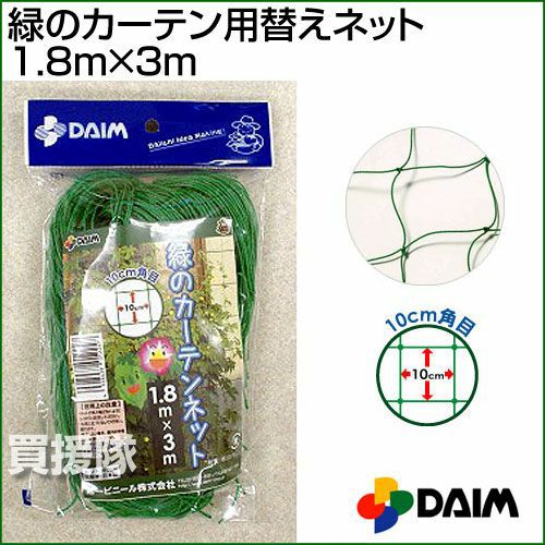 他の画像を見る ネットの両端に太いロープが縫製、丈夫な園芸ネット 第一ビニール 緑のカーテン サイドロープ付 緑のカーテンネット 3.6m×5m 買援隊 特別価格 ¥ 2,040 税込 カートに入れる お気に入りに登録する