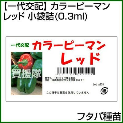 メーカー フタバ種苗 品名 【一代交配】 カラーピーマン レッド 小袋詰(0.3ml) JANコード 4571116542594 カラー レッド ※この種子は農楽を使用していません。 ※こちらの商品は代金引換でのご注文はお受けできませんのでご注意ください。※メール便での配達となるため、お届けはポストへの投函となります。あらかじめご了承ください。 【送料での注意】送料別の商品と送料込の商品をご一緒に注文頂いても、送料込とはなりませんのでご注意ください。(※合計金額が税別10,000円以上は除く)