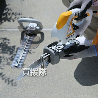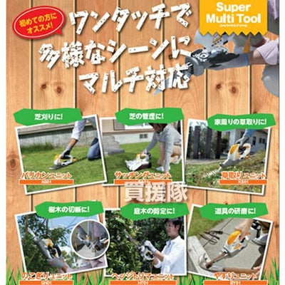 先端ユニット(別販売品)を組み合わせることで、芝の刈込み、芝のサッチ取り、庭木の剪定、草取り、生垣の刈込み、刃研ぎなどが可能