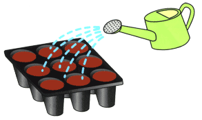 発芽したら徐々に日光に当て、乾燥に注意し、本葉が出る前に移植または間引きをします。