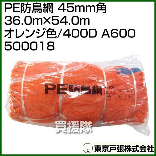他の画像を見る 【送料無料】ストップtheバード!防鳥は何といっても網が一番 東京戸張 PE防鳥網 45mm角 36.0m×54.0m [オレンジ色/400D] A600 500018 [カラー:オレンジ] 買援隊 特別価格 ¥ 17,600 税込 カートに入れる お気に入りに登録する