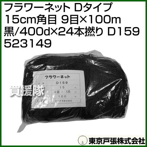 他の画像を見る 【送料無料】花・アスパラ・ネギ等の倒伏防止に 東京戸張 フラワーネット Dタイプ 15cm角目 9目×100m [黒/400d×24本撚り] D159 523149 [カラー:黒] 買援隊 特別価格 ¥ 10,890 税込 カートに入れる お気に入りに登録する