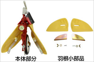 培土器の梱包の中には写真の様な、本体部分と羽根小部品が入っています。
