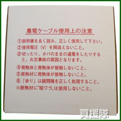 - 農電ケーブルは、必ず'タバ'を「ひろげて」発熱線と発熱線が接触しないようにしてから通電してください。