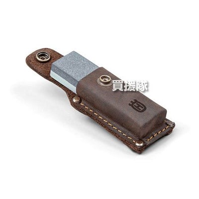 小型シリコンカーバイド (炭化ケイ素) 砥石。#120・#320 荒砥石と中砥石の両方を兼ね備えています。乾式または湿式(水・オイル)のどちらでも使用可能。 ロゴ入りレザーポーチが付属しています。