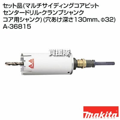 マキタ セット品(マルチサイディングコアビット センタードリル・クランプシャンク コア用シャンク)(穴あけ深さ130mm、Φ32) A-36815
