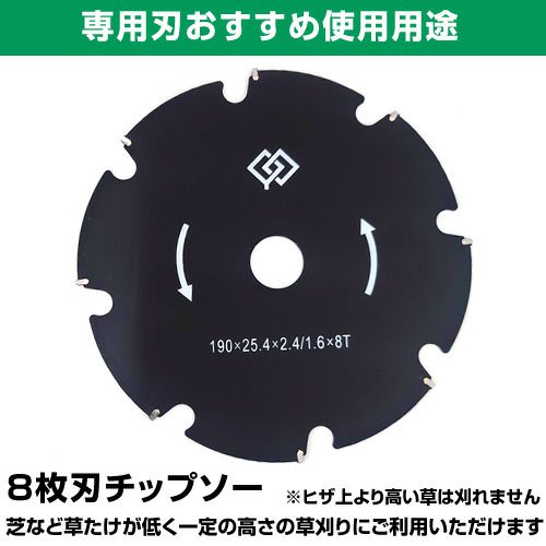 ・8枚刃チップソー…芝など草たけが低く一定の高さの草刈りにご利用いただけます。