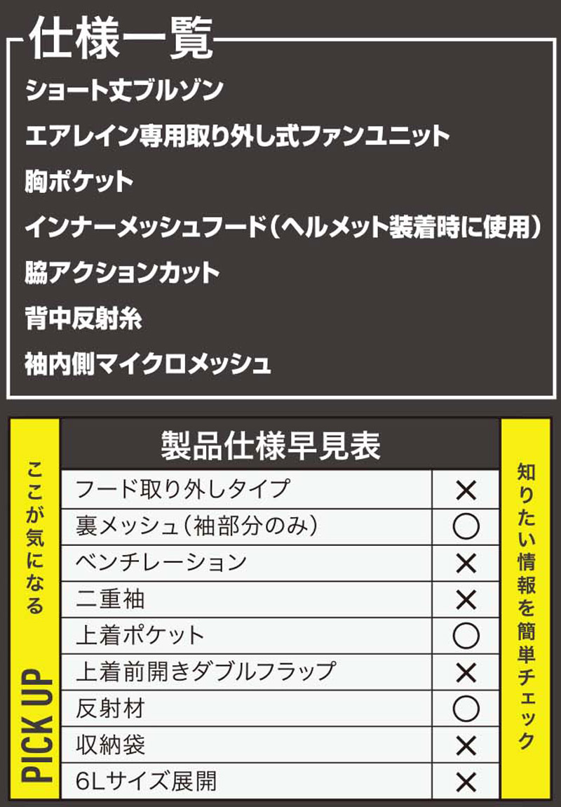 ファンを取り付けられるプロ向けレインブルゾン