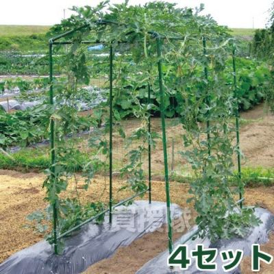 小型カボチャ、小玉スイカ、キュウリ、ゴーヤ、エンドウなどのつる野菜の空中栽培が楽しめます。 地這い栽培ができない時の省スペース栽培に。