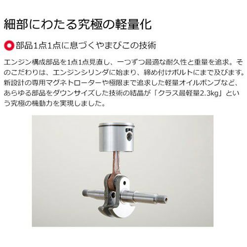- ※やまびこ純正2サイクル専用オイルか、JASO性能分類FCまたはFD(本体乾燥質量はソーチェン、ガイドバー、燃料、オイルを含みません)