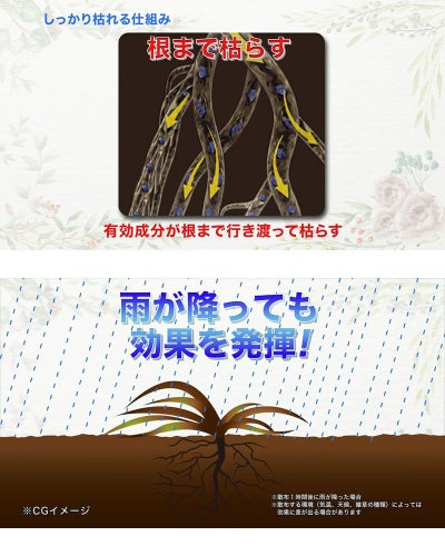 ●しっかり付着、根まで枯らす!