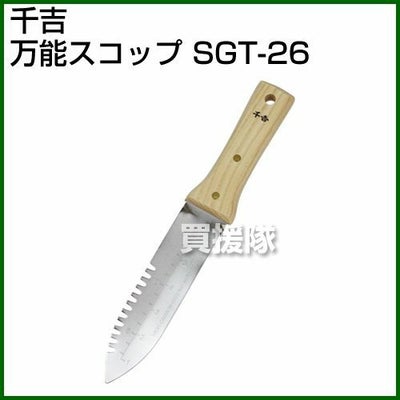 商品コード FUJIWARA-621625JANコード 4977292621625ブランド名 千吉商品名 万能スコップ規格 SGT-26商品サイズ 幅50×高さ310×奥行20mm重量 200g穴掘り、植え替え、根切り、除草など一本で多用途に使用できます。【用途】穴掘り、植え替え、根切り、除草用。【機能・特徴】穴掘り、植え替え、根切り、除草など一本で多用途に使えます。刃部は全身焼入れで頑丈&丈夫です。根切り作業に便利なギザ刃付きです。【材質】●刃部:刃物鋼。●ハンドル部:木。