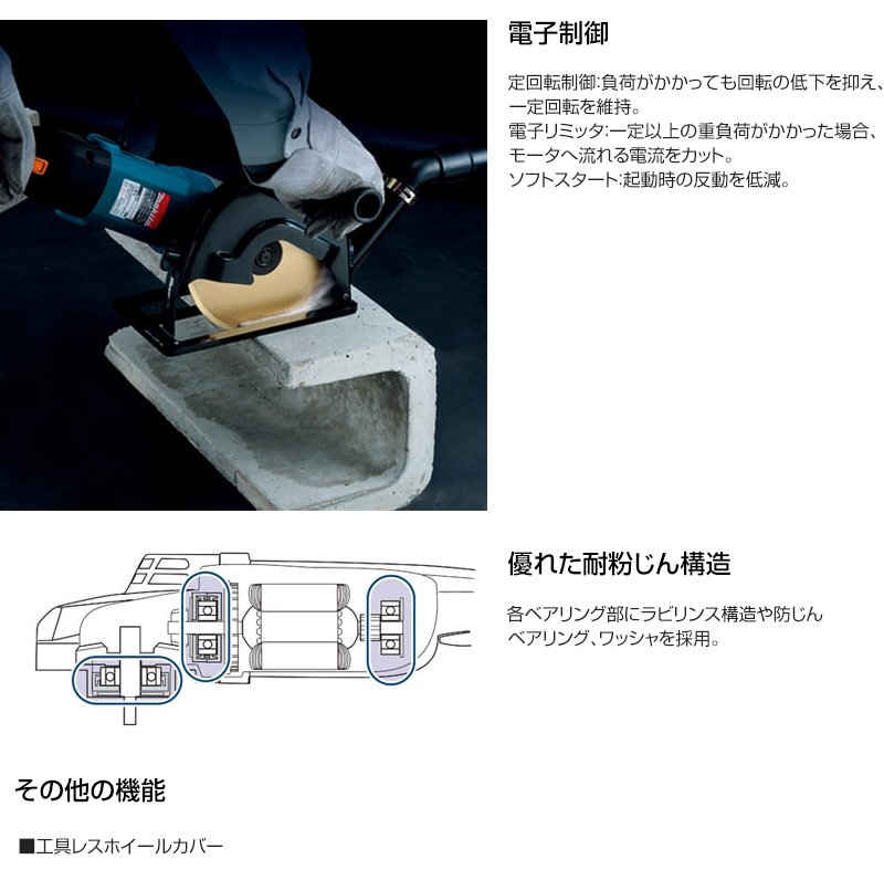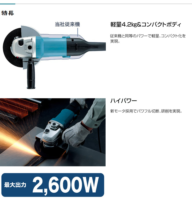 【ハイパワー】新モータ採用でパワフル切断、研削を実現。