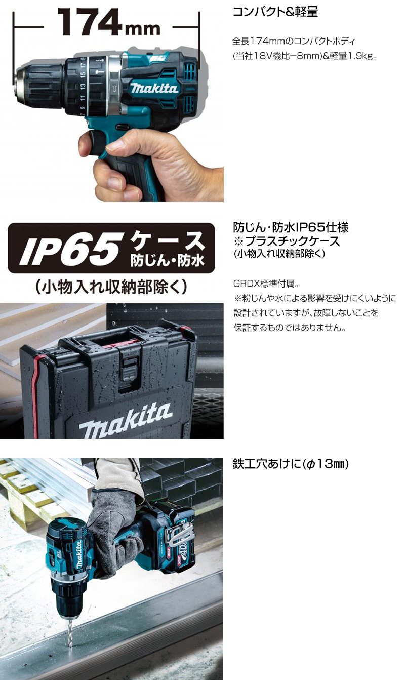 【40Vmaxリチウムイオンバッテリー ミドルクラス 高速回転 石工 木工 コンクリート 鉄工 配電盤BOX ネジ切り 高耐久オールメタルギヤ ハイパワーブラシレスモータ 定回転制御 本体IPX6 コンパクト 軽量 高輝度LEDライト プラスチックケース付 充電式 コードレス 工具 電動工具 DIY ツール 工具 用品 makita 純正品】