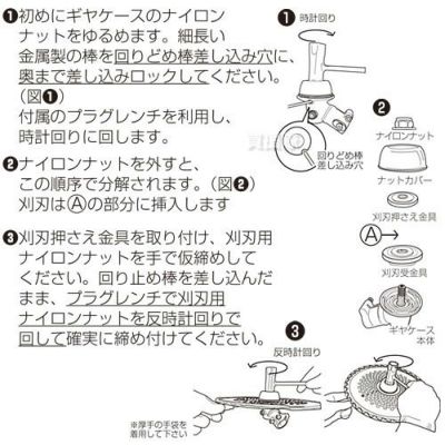 • ヘッド部の替刃固定についてボルト・ナットのねじ径はM10となります