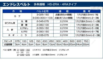 ※播種ベルトは別途取り寄せ可能です。ご希望の場合にはご連絡ください。