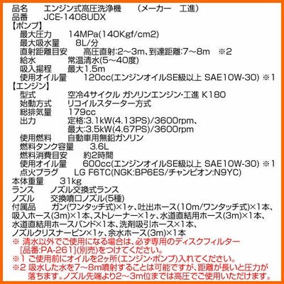 - 品名エンジン式高圧洗浄機