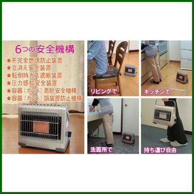 不完全燃焼防止装置、転倒時消火装置、立ち消え安全装置、圧力感知安全装置を完備